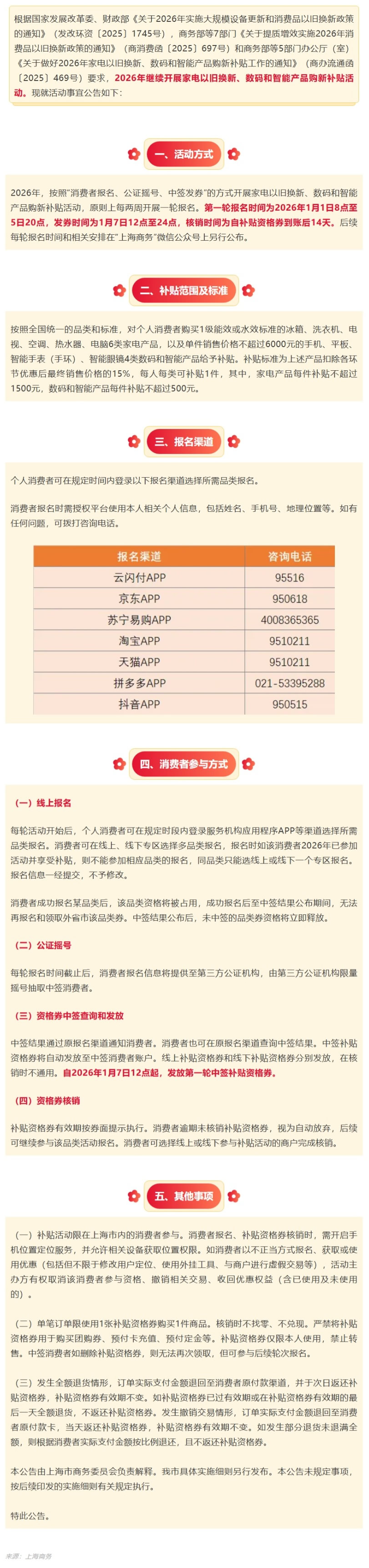 2026年上海家电以旧换新、数码和智能产品购新补贴活动公告发布